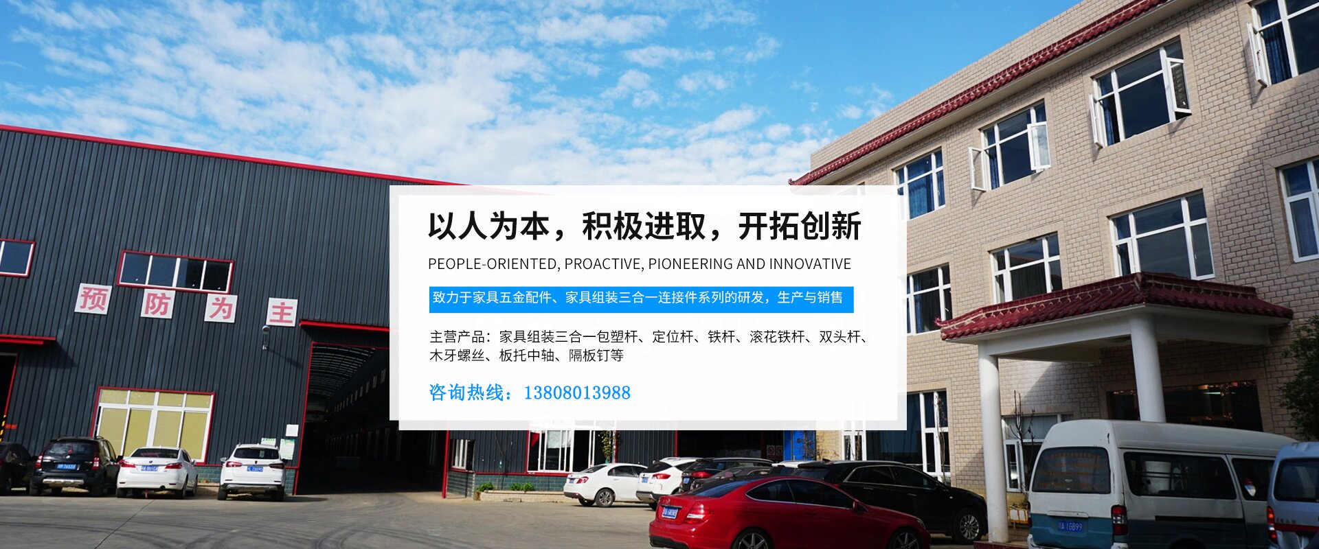成都市聯盛五金制品有限公司成立于2012年,現擁有廠房面積16000平方米,主要從事家具五金配件、家具組裝三合一連接件系列的研發,生產與銷售。公司目前主營產品:家具組裝三合一包塑桿、定位桿、鐵桿、滾花鐵桿、雙頭桿、木牙螺絲、板托中軸、隔板釘等。